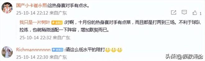 只是对于热身赛对手的挑选方面,实际上继续打这种球队意义并不大,或许还不如考虑一些同档次有全运会任务的对手为主。