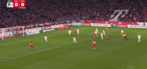 比赛开打之后,摆出五后卫准备在安联球场死守的美因茨,在第16分钟率先制造了一次有威胁的进攻,李在城的头球攻门击中门框被弹出,随后被诺伊尔没收,4分钟之后,凯恩也回敬了对手一记头球攻门,角度太正被美因茨门将奋勇托出横梁。